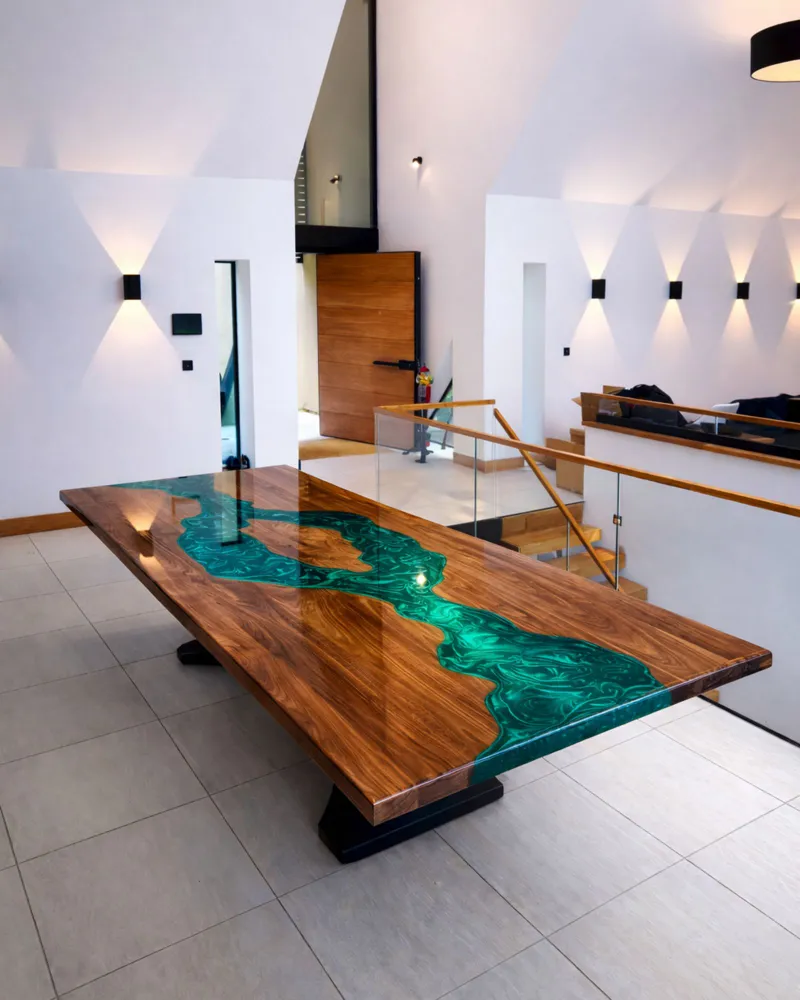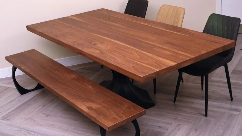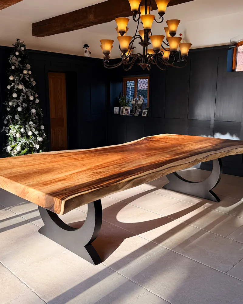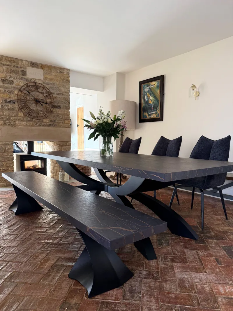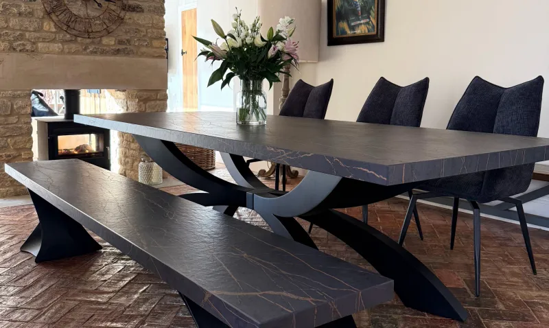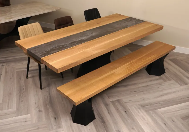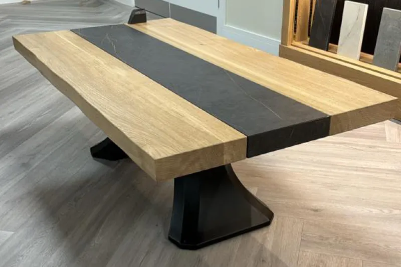 Oak Dining Table with Trillium Dekton Strip - Omari Base