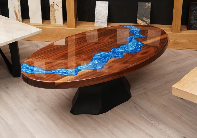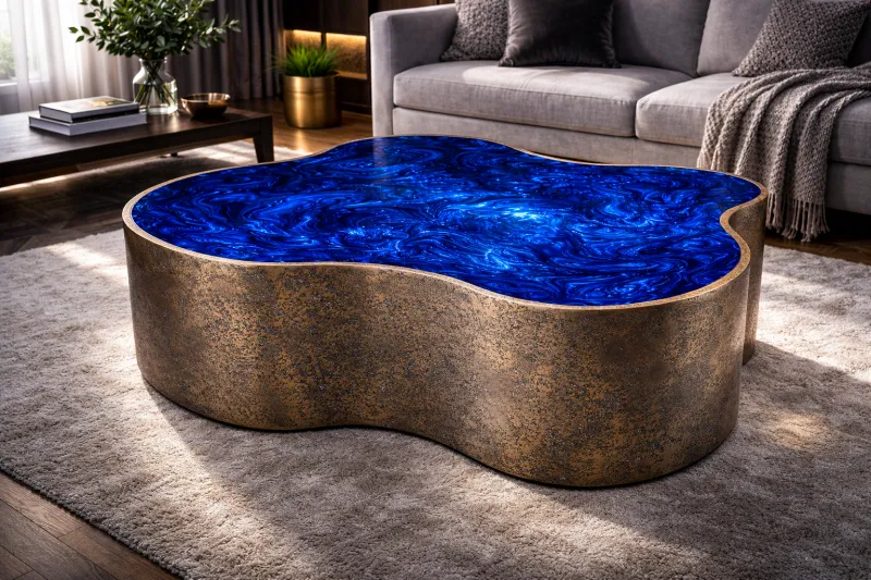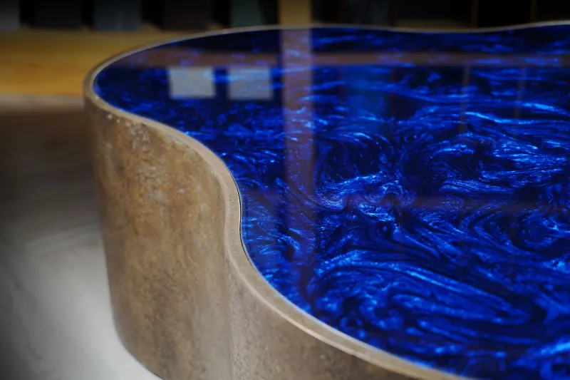 Bespoke Coffee Table - Puddle shape - Laurent top with a Liquid Metal Base