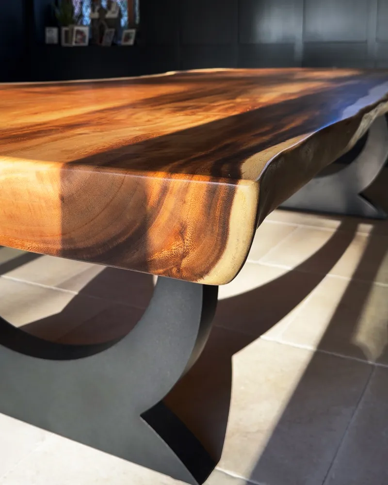 Indonesian Suar is a truly exceptional hardwood, prized for its dramatic grain patterns, warm colour tones and natural live-edge character. No two pieces of Indonesian suar wood are ever the same, giving every suar table a unique, organic presence that stands apart from mass-produced furniture.