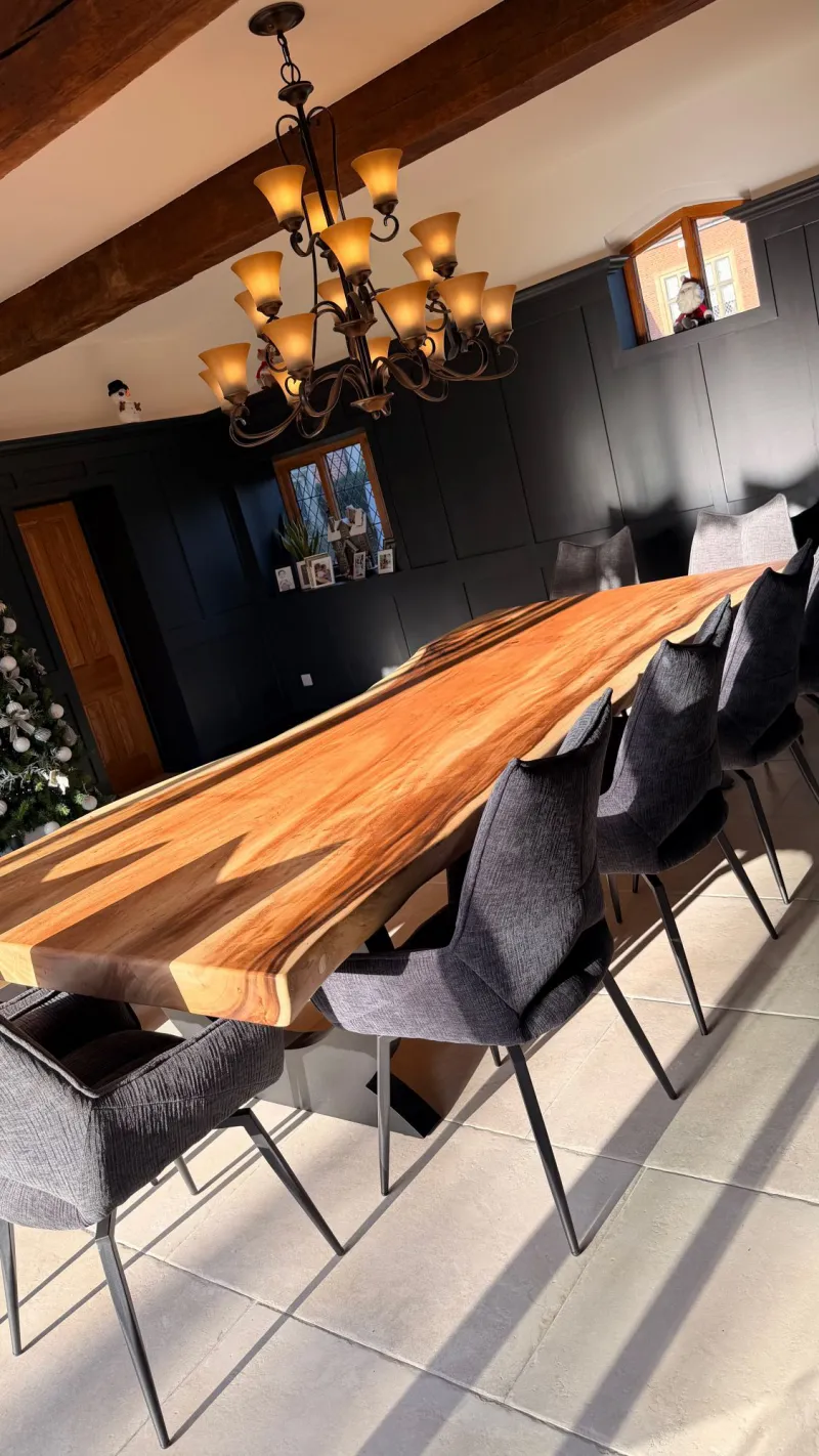 Each slab begins as a solid, live-edge section of the tree, preserving its natural contours, grain and variation in colour. Once carefully kiln-dried to improve stability and prevent movement, every piece is hand-finished to enhance its natural beauty, creating a striking centrepiece that brings the natural character of the wood into your home.